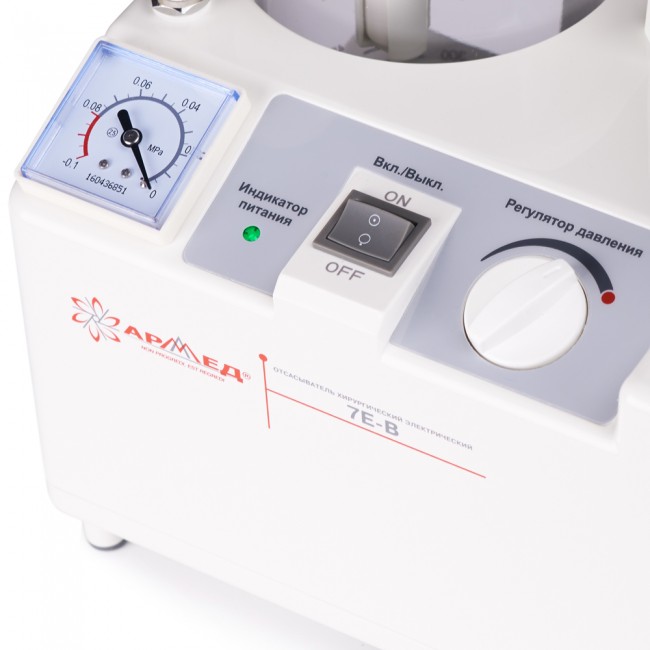 • Отсасыватель хирургический электрический Armed 7Е-В предназначен для отсасывания крови, гноя и различных жидкостей, частиц тканей и газов из операционных ран и других полостей во время и после операций.