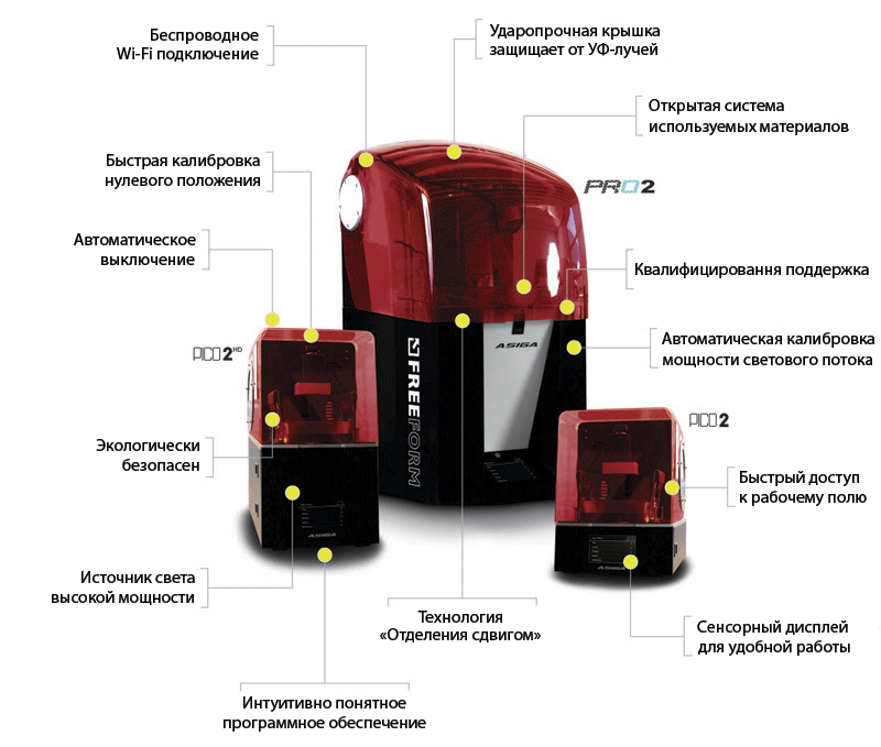 Принтер Freeform PRO2™ легко вписывается в офисное помещение и даёт возможность использования подключения Ethernet для совместного сетевого доступа. В процессе работы бесшумен, не имеет запаха и не требует никаких дополнительных средств и оборудования.