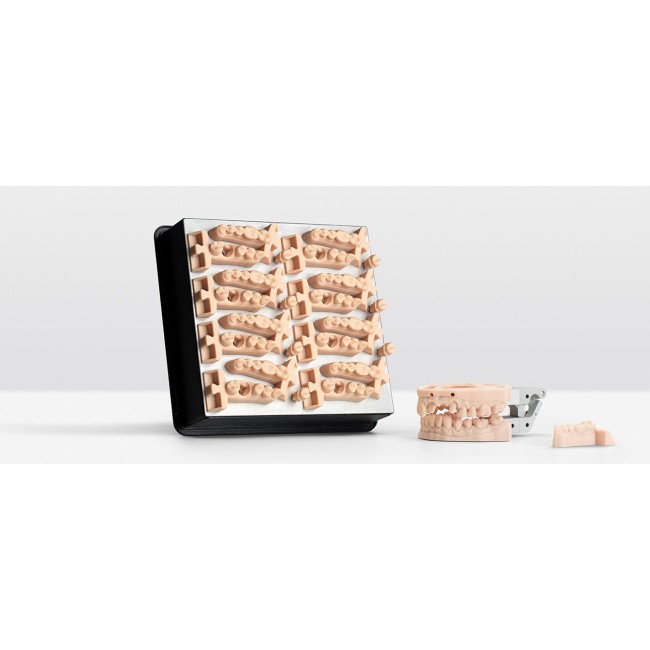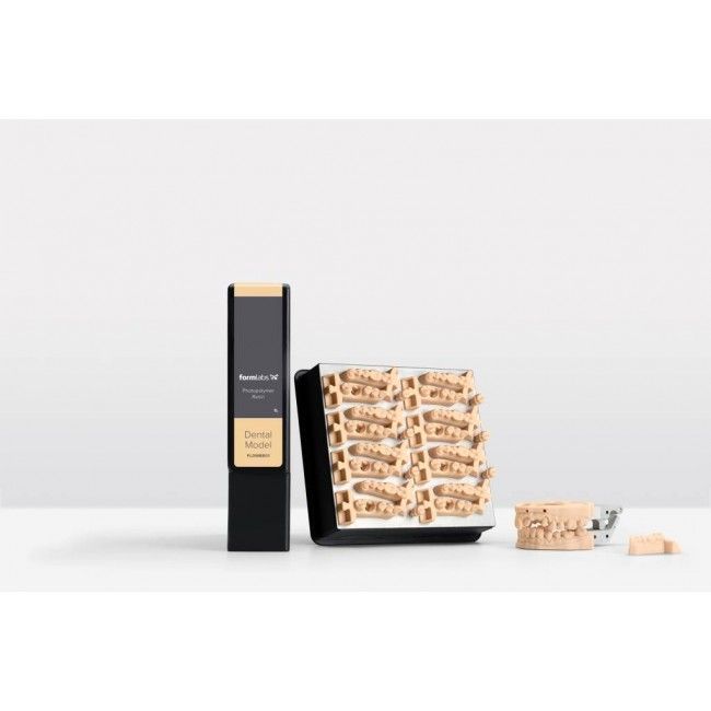 Formlabs Dental Model — фотополимер, разработанный специально для стоматологических работ. С её помощью изготавливают формы для моделирования коронок, мостовидных протезов со съёмными матрицами, а также съёмные матрицы с постоянной плотностью.