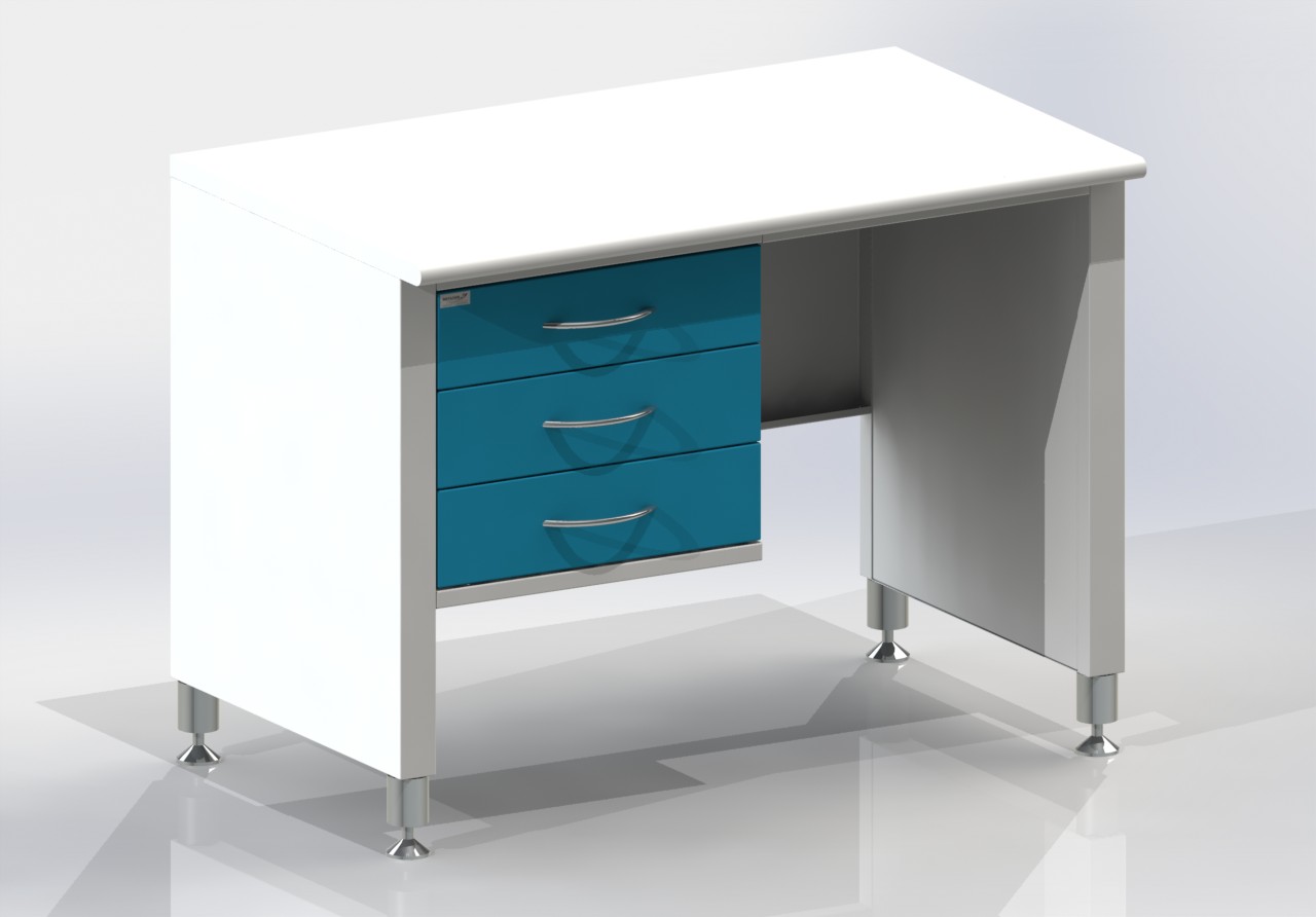 Стол лабораторный с 3-мя выдвижными ящиками на хромированных ножках, постформинг столешница.