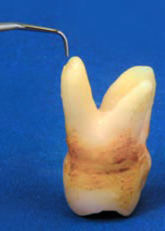 Рабочая часть насадки расположена на её кончике, это последние 2 – 3 мм. Кончик насадки (рабочую часть насадки), следует располагать соосно продольной оси зуба. Насадкой, не погружая её сразу в десневую борозду, необходимо пройти по периметру зуба, убирая доступные для обзора наддесневые (или поддесневые) отложения, без чрезмерного латерального давления. Начинайте работу с лицевой стороны зуба перемещаясь к мезиальному или дистальному краю.