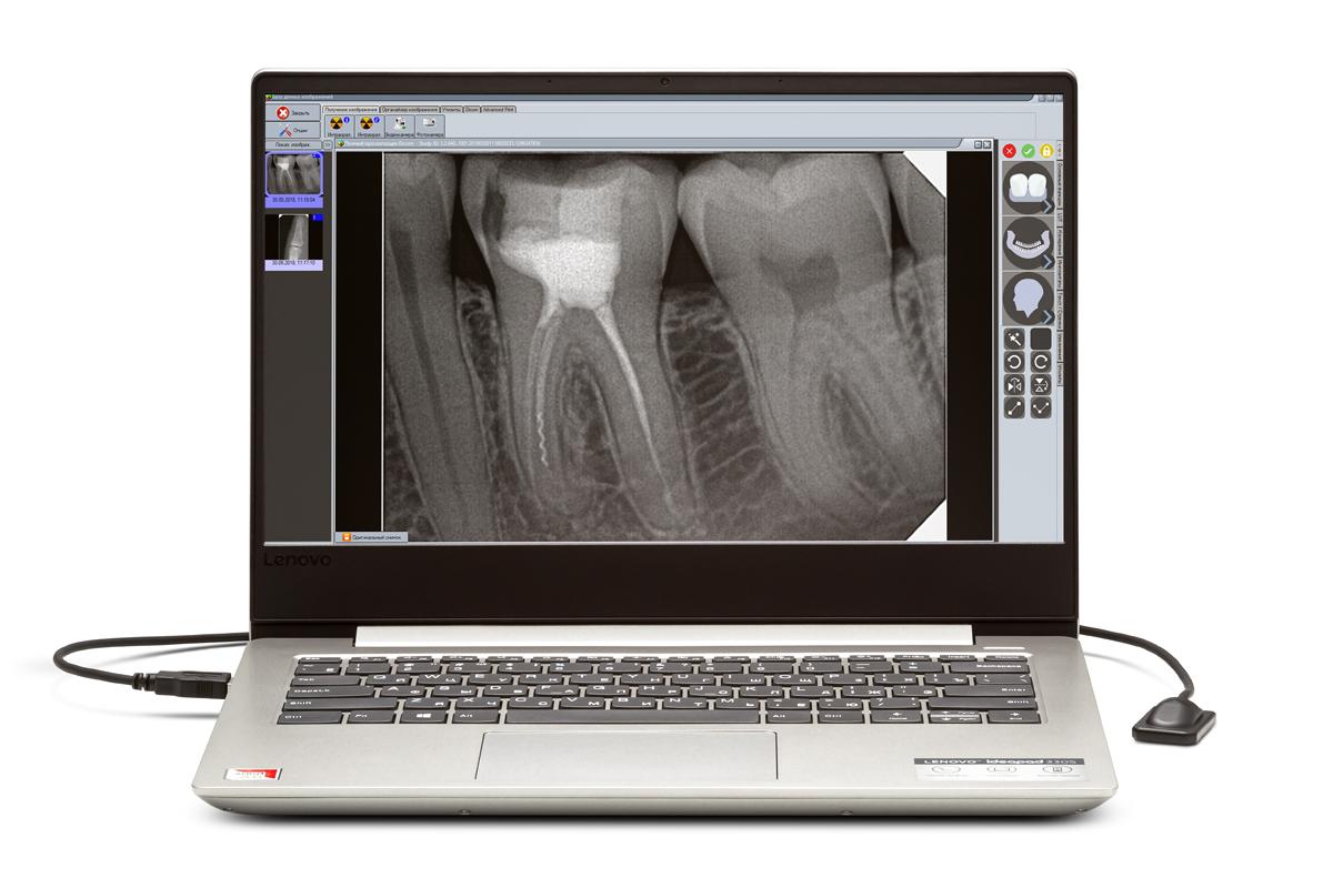 DIGISENS - стоматологической дентальный цифровой интраоральный датчик для визуализации с ноутбуком и настроенным ПО в комплекте. Предназначен для преобразования теневого рентгеновского изображения зубо-челюстной системы в электрический сигнал и передачи его по USB каналу для обработки, визуализации и хранения.