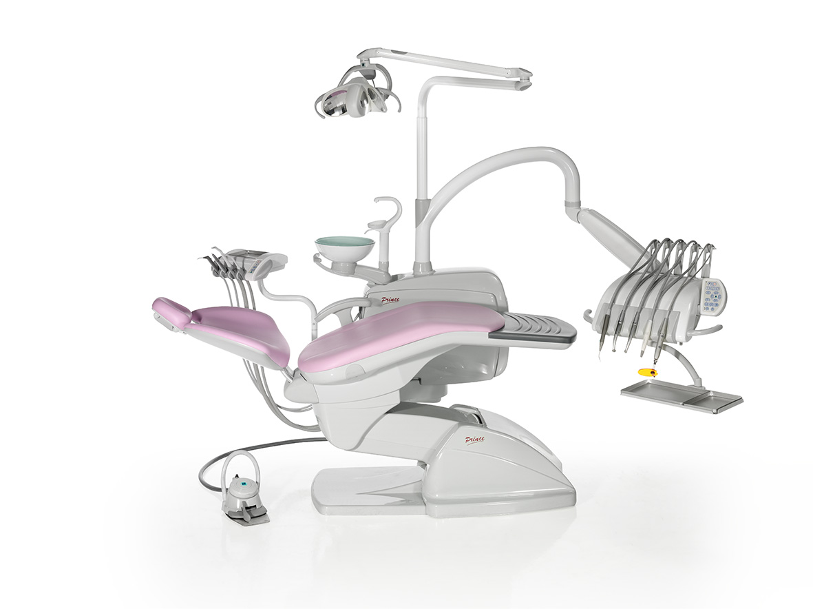 • Столик ассистента на 4 инструмента на подвижном кронштейне (2 шланга с насадками слюноотсоса и пылесоса и 2 свободных).