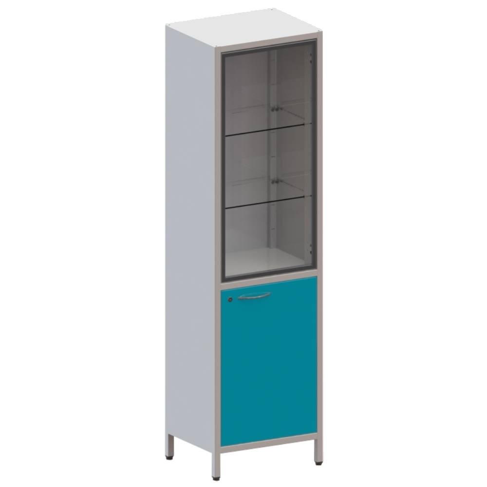 - 3 стеклянные регулируемые полки; - Дверка нижней секции из металла, с одной металлической полкой;