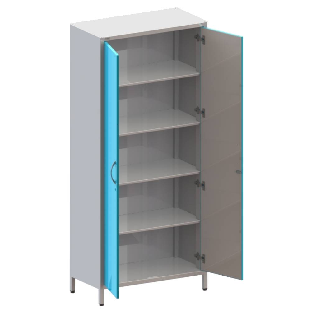 Двухстворчатый. Одна дверь с замком, внутри 4 стационарные полки.